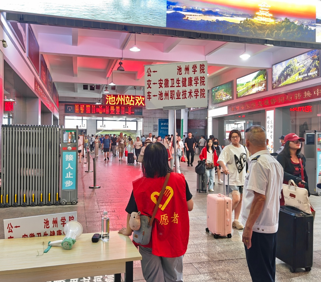 開學季客流高峰期間,池州市城市公交在池州站出站口和火車站公交站牌,安排公交志愿者開展暖心幫扶、秩序維護、文明導乘等服務活動。上線“迎新”播報:“窗外有風景,手里有課本,池州城市公交祝福廣大新生:眼里有夢想,心中有未來”,切實提升廣大學子出行體驗。