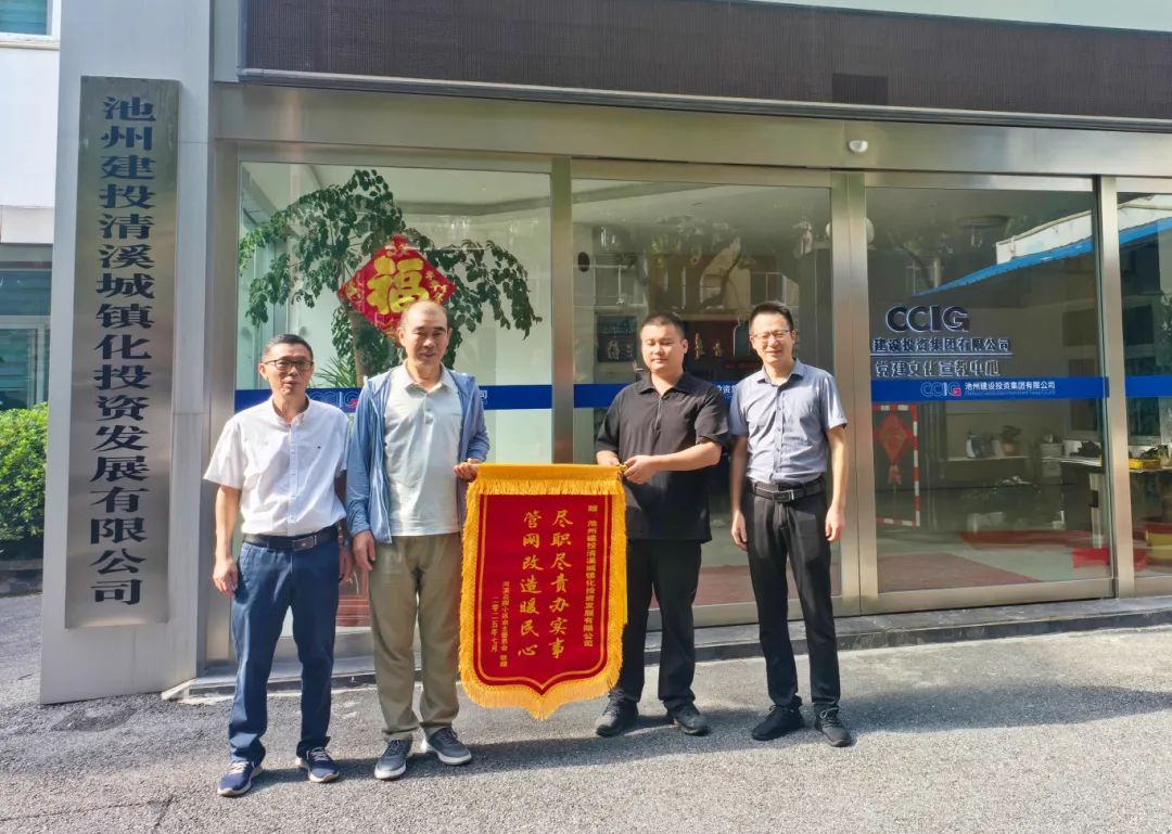 近日,河濱花園業(yè)主委員會代表全體居民將一面寫滿贊譽的錦旗送到集團所屬清投公司。這面錦旗承載著居民們對主城區(qū)排水防澇綜合能力提升項目的高度認可,對公司積極作為、高效解決民生難題的誠摯感謝。