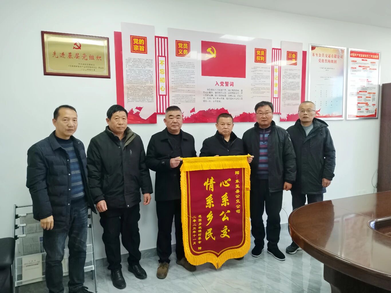 2025年11月25日上午,安徽省池州市東至縣花園鄉(xiāng)桃源村委會(huì)支書(shū)一行專(zhuān)程來(lái)到東至公交公司,送上了一面印有“心系公交 情系鄉(xiāng)民”的錦旗,以此表達(dá)對(duì)公司多年來(lái)堅(jiān)持運(yùn)營(yíng)縣城至桃源村公交線(xiàn)路的誠(chéng)摯謝意。
