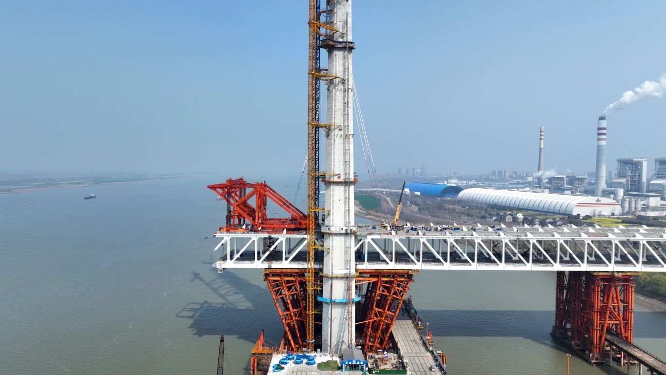 截至目前,池州長(zhǎng)江公鐵大橋南岸第22節(jié)段鋼梁已順利完成吊裝拼接工作。南岸主塔塔柱272.7米全部完成。南引橋鐵路墩身全部完成,正在進(jìn)行上部結(jié)構(gòu)施工,已完成26片鐵路梁施工,公路連續(xù)梁施工已完成16節(jié)段。