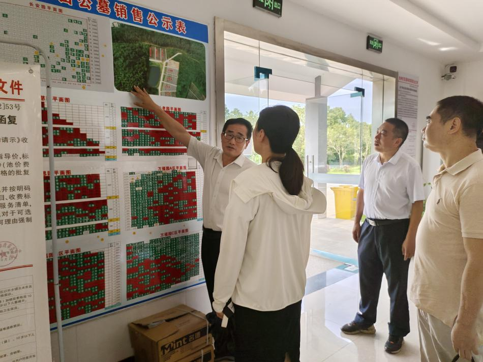 朱蕓蕓一行先后參觀了生態(tài)人文公司服務(wù)接待大廳、公墓銷售公示欄,聽(tīng)取了生態(tài)人文公司目前安全生產(chǎn)、服務(wù)經(jīng)營(yíng)等方面工作匯報(bào),并實(shí)地察看了池州生態(tài)人文紀(jì)念園項(xiàng)目施工現(xiàn)場(chǎng),深入了解了園區(qū)規(guī)劃、公益性墓區(qū)、骨灰堂等工程建設(shè)相關(guān)情況。