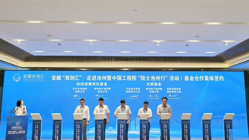 開幕式上首個重大項目——池州市產業(yè)基金公司與東方證券、太證資本和合高資本進行基金合作簽約。本次簽約的池州科技成果轉化基金是近年來池州市首支與省母基金合作的基金項目,同時池州太證合高股權投資合伙企業(yè)(有限合伙)(暫定)是池州市首支天使基金。