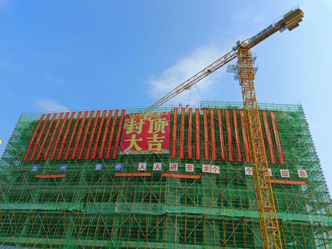 自2022年9月26日開(kāi)工建設(shè)以來(lái),建投集團(tuán)組織精干隊(duì)伍,派駐優(yōu)秀技術(shù)骨干,投入先進(jìn)機(jī)械設(shè)備,全力按高起點(diǎn)、高標(biāo)準(zhǔn)、嚴(yán)要求推進(jìn)項(xiàng)目建設(shè)。于2022年底前完成了深基坑開(kāi)挖及支護(hù)工程,為項(xiàng)目主體施工奠定了安全、堅(jiān)實(shí)的基礎(chǔ)。主體結(jié)構(gòu)施工中采用大跨度、高支模及后張法預(yù)應(yīng)力梁工藝,秉承“安全第一、預(yù)防為主、綜合治理”的安全生產(chǎn)方針,堅(jiān)持安全是根本、質(zhì)量是生命的發(fā)展理念,全力推動(dòng)項(xiàng)目建設(shè),克服困難,承壓奮進(jìn)。最終歷時(shí)10個(gè)月,于2023年8月6日?qǐng)A滿完成主體結(jié)構(gòu)封頂。