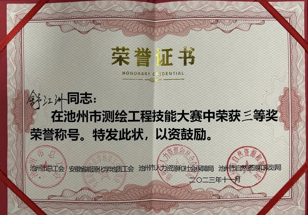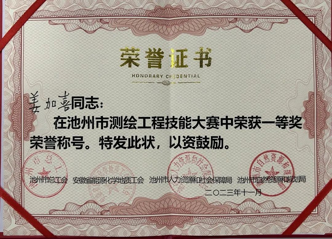 日前,池州市首屆測(cè)繪工程技能大賽圓滿落幕,全市22家測(cè)繪單位的15支隊(duì)伍以及20余名個(gè)人賽選手參加。最終,集團(tuán)所屬池州市規(guī)劃勘測(cè)設(shè)計(jì)總院有限公司在此次技能大賽獲得團(tuán)體總成績第一、個(gè)人成績第一的佳績。