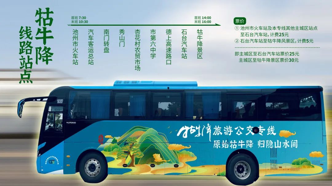 11月1日,池州主城區(qū)環(huán)城旅游公交線路和池州高鐵站至牯牛降景區(qū)旅游直通專線正式開通。環(huán)城公交線路全長約35公里,配備4臺新能源純電動公交車,采取環(huán)線運營模式,途徑杏花村、平天湖、齊山、百牙塔、天堂湖公園等特色景區(qū)景點?;疖囌局陵襞=稻皡^(qū)旅游直通專線全長100公里,沿線設(shè)置9個??奎c,采用循環(huán)發(fā)車模式,旅客可直接“打卡”牯牛降景區(qū),暢游石臺享受美好“硒”生活。