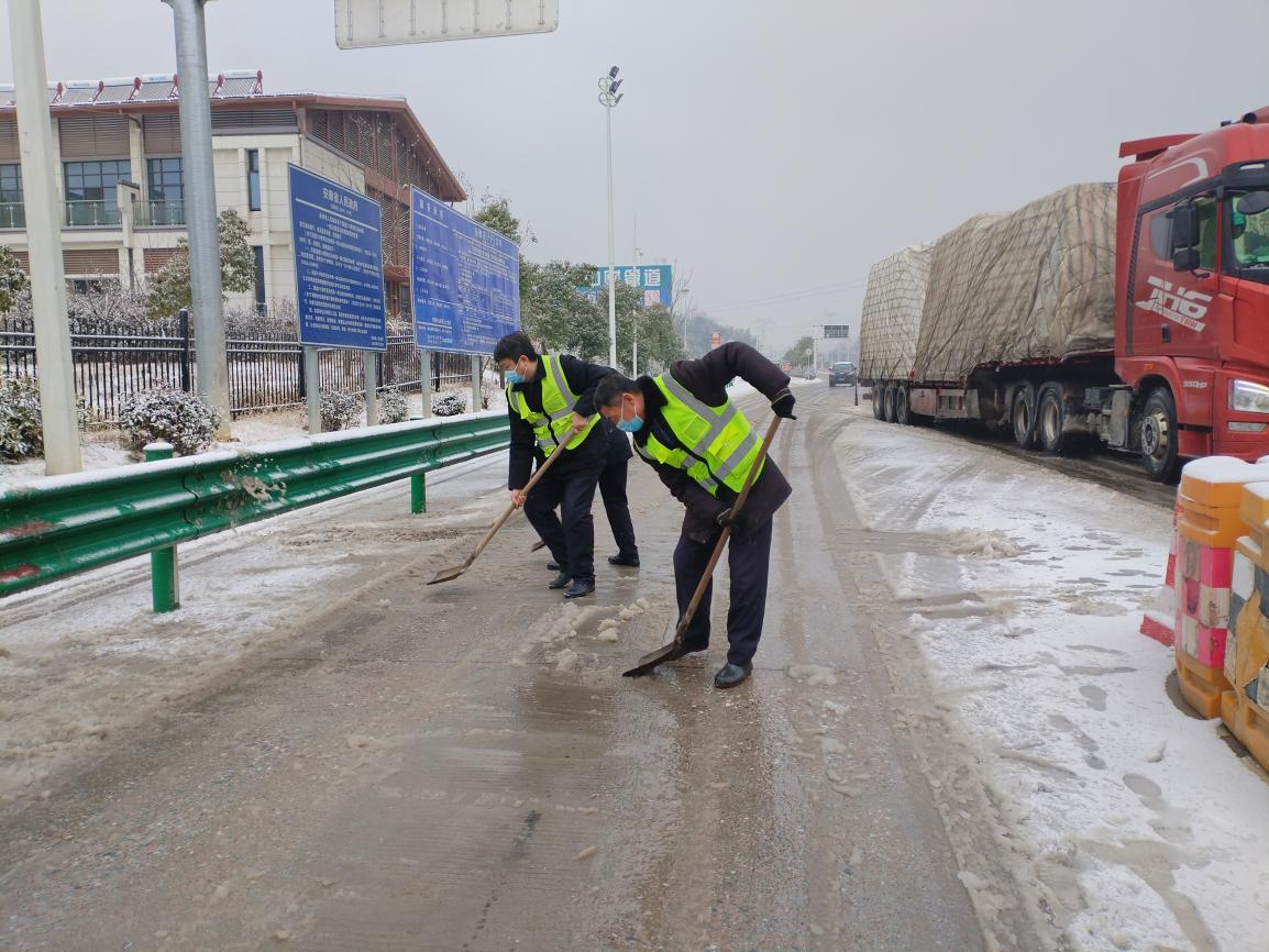 為確保G318墩上收費站通行安全,公司迅速成立除雪保暢通工作領導小組,負責統(tǒng)一指揮調(diào)度。黨員干部帶頭深入除雪一線,通過現(xiàn)場觀察及時掌握降雪情況及車輛通行狀況,全程調(diào)度除雪保暢工作各個環(huán)節(jié)。截止目前,G318墩上收費站出動志愿服務人員29人,開展掃雪除冰活動4次,累計保障約2萬輛車次安全通行。