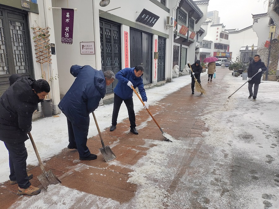 2月23日上午,孝肅街公司第一時間組織黨員和職工紛紛走上街區(qū)開展掃雪除冰活動。寒風陣陣,并沒有阻擋支部黨員干部和職工掃雪除冰的熱情。經(jīng)過2個多小時連續(xù)的奮力清掃,將街區(qū)人行道積雪打掃干凈,讓街區(qū)道路變得安全暢通,為市民群眾的安全出行帶來了便捷,更是傳遞了一份溫暖和正能量。