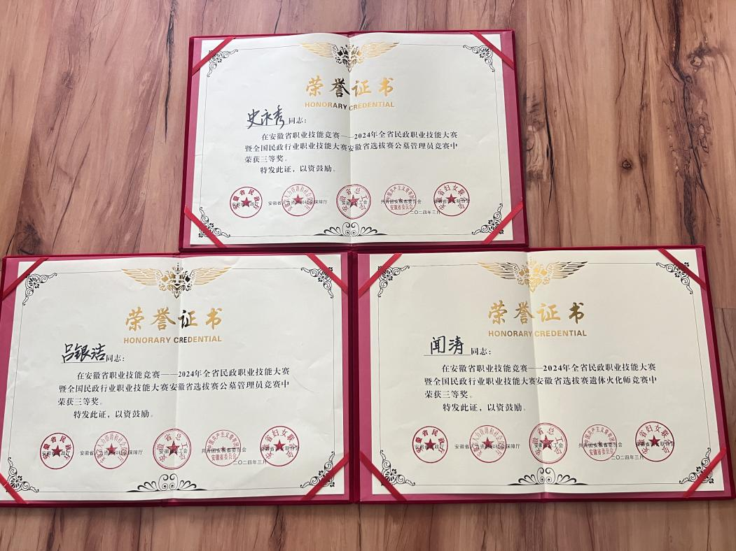 近日,在六安市舉辦的2024年安徽省民政行業(yè)職業(yè)技能競賽圓滿落幕。本次競賽共分公墓管理員和遺體火化師2個賽項,池州生態(tài)人紀念園運營有限公司參賽隊參賽選手史永秀、呂銀潔榮獲公墓管理員賽項個人“三等獎”,聞濤獲遺體火化師賽項個人“三等獎”,其中,遺體火化師賽項是我市首次獲獎。